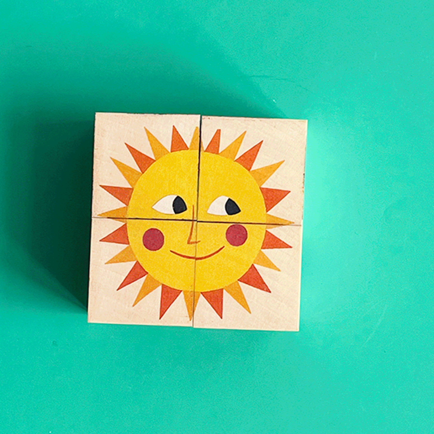 A children's book classic paired with a classic style toy is sure to delight in an old fashioned way! Includes one I am a Bunny board book, and one 4-piece, 4 x 4-inch wood cube puzzle featuring colorful nature scenes including a little rabbit!