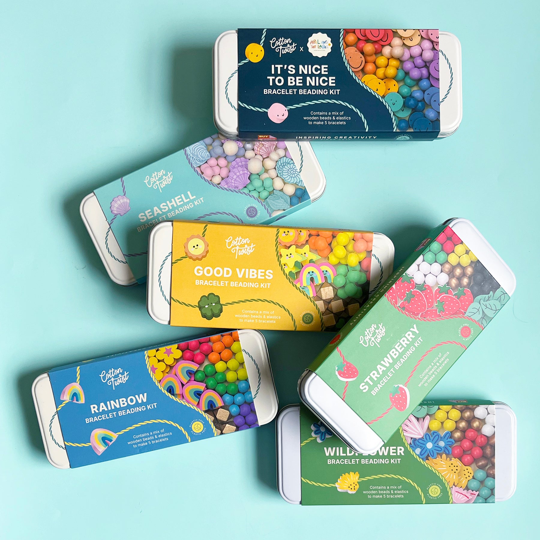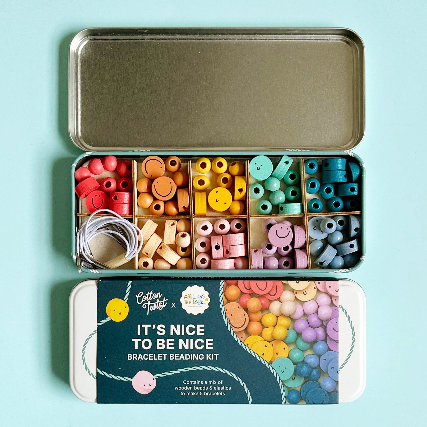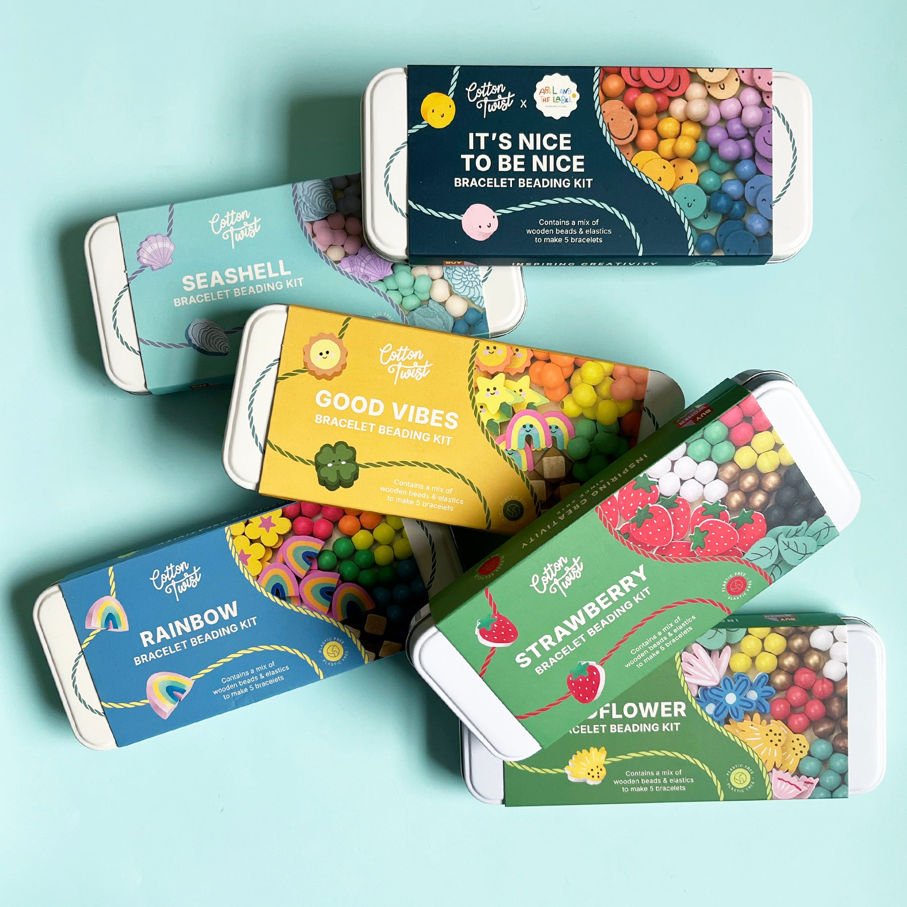 This fun, and easy kit from UK based brand Cotton Twist contains supplies to make 5 bracelets including elastic and tons of beautiful wooden beads- no plastic here! Recommended kids ages 3 and up.