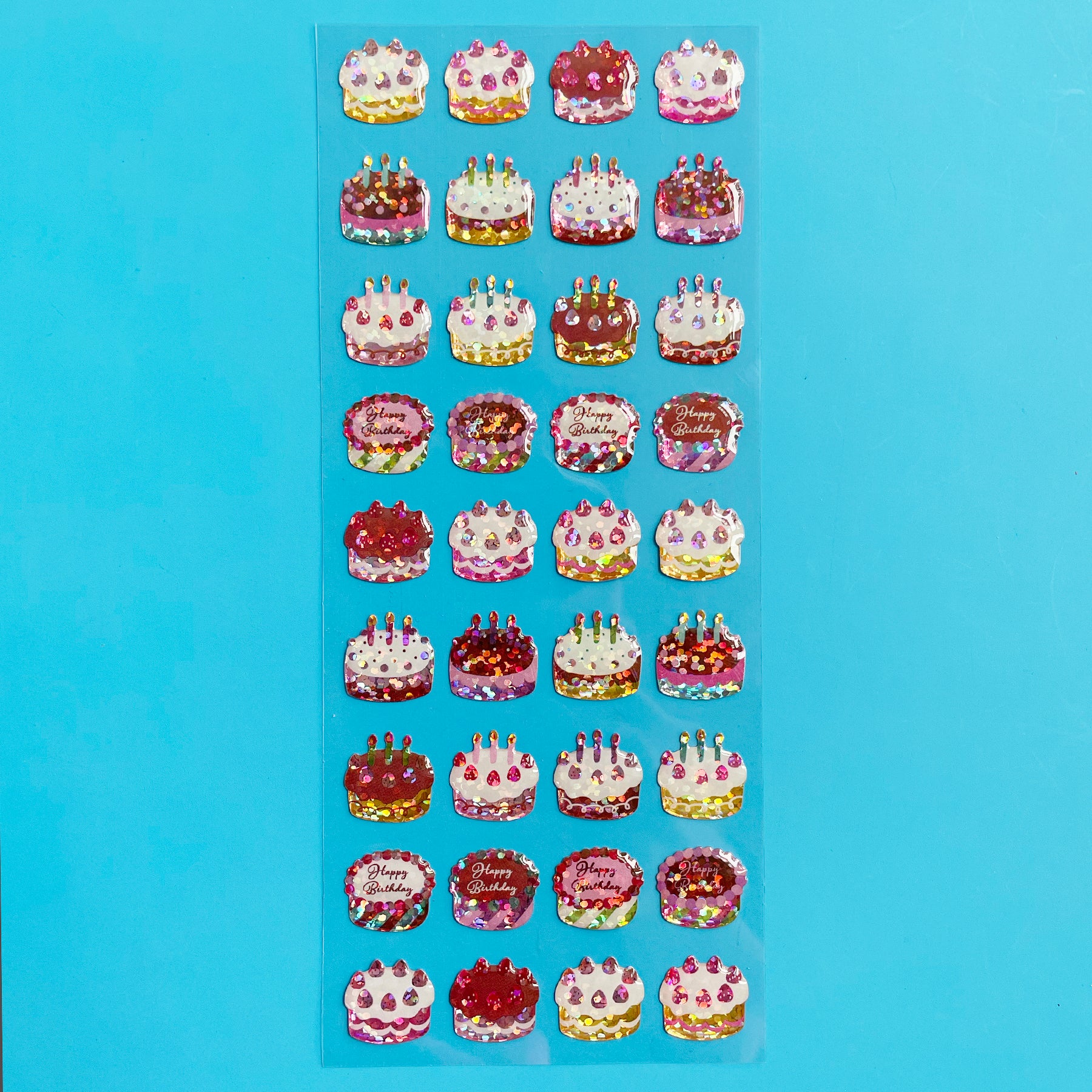 Celebrate with stickers! This 3 x 6.5-inch sheet includes 36 sparkly cakes ready to decorate your world!