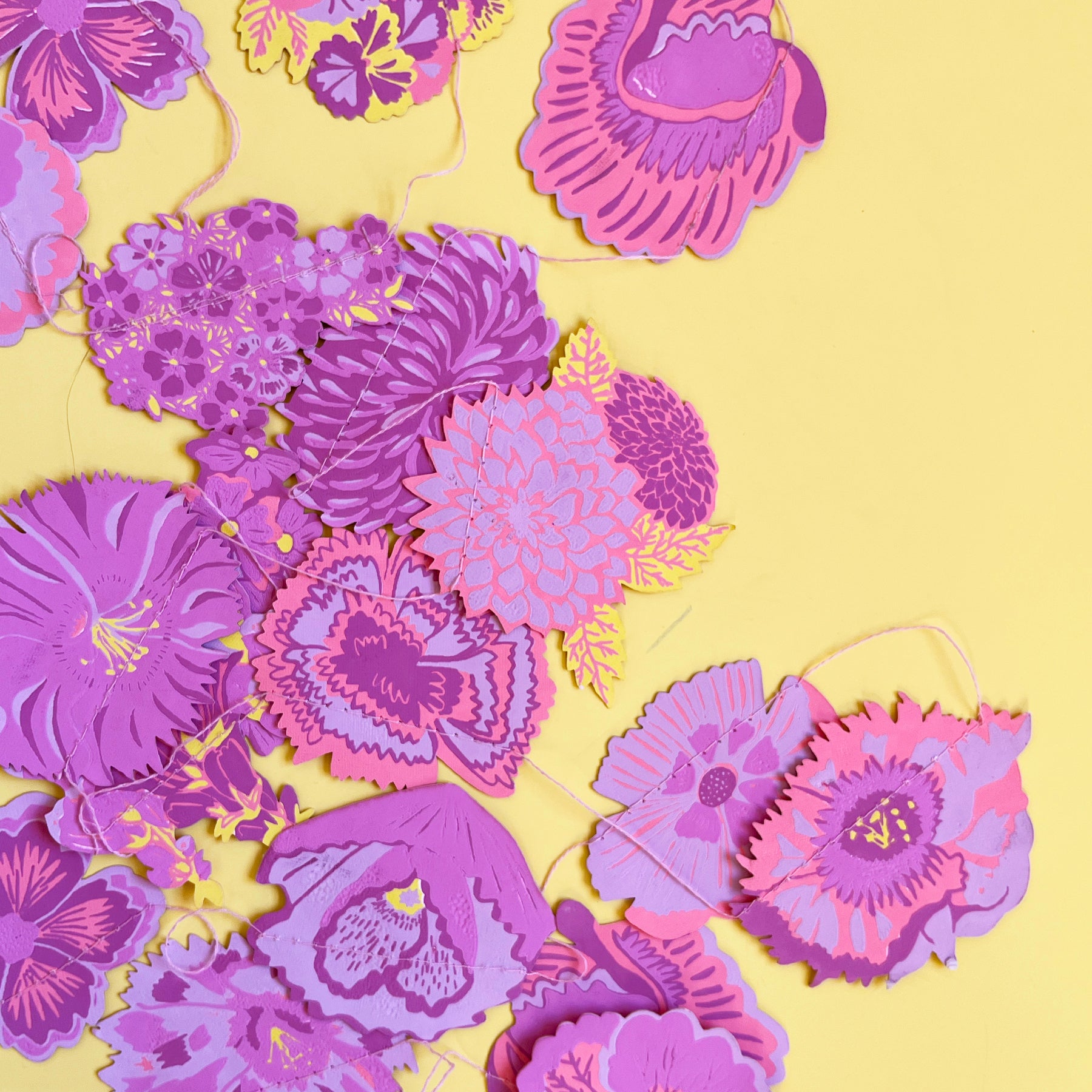 Spread some spring cheer! This garland unfolds to create three meters of shapes, printed on both sides of thick handmade paper.