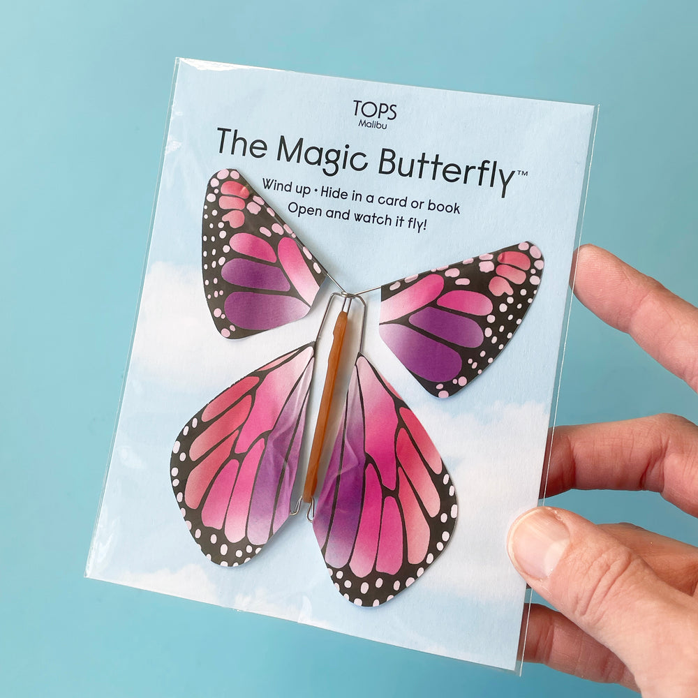 Enjoy the surprise and set hearts aflutter with Magic Butterflies! Wind the wings and tuck the butterfly into a card (or a book!) When the recipient opens the missive, the lovely butterfly takes flight for a joyous surprise! Perfect for birthdays, penpals, and any other special occasion, these ingenious little creatures - which can be used over and over again - deliver soaring declarations of love and good cheer.