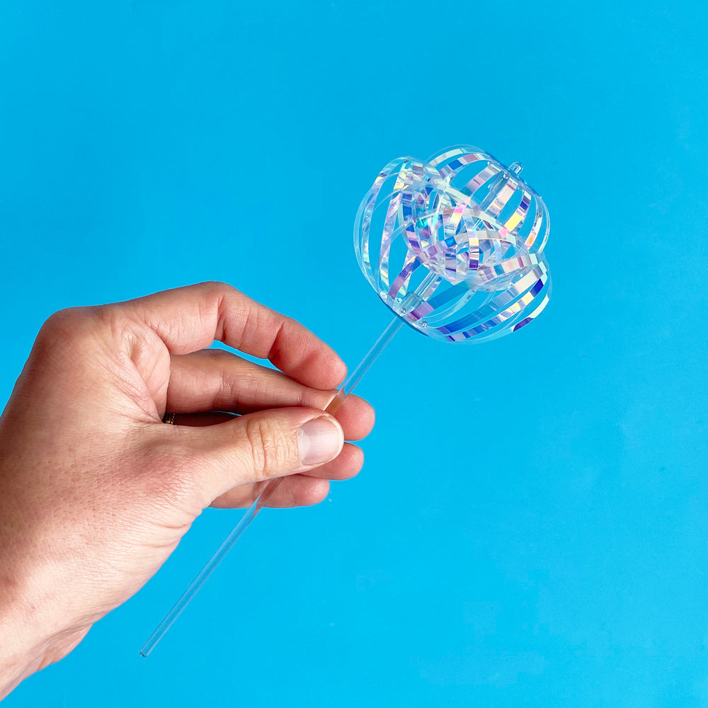 Keep little hands busy with this addictive and beautiful twirling toy! 7.5 inches tall.