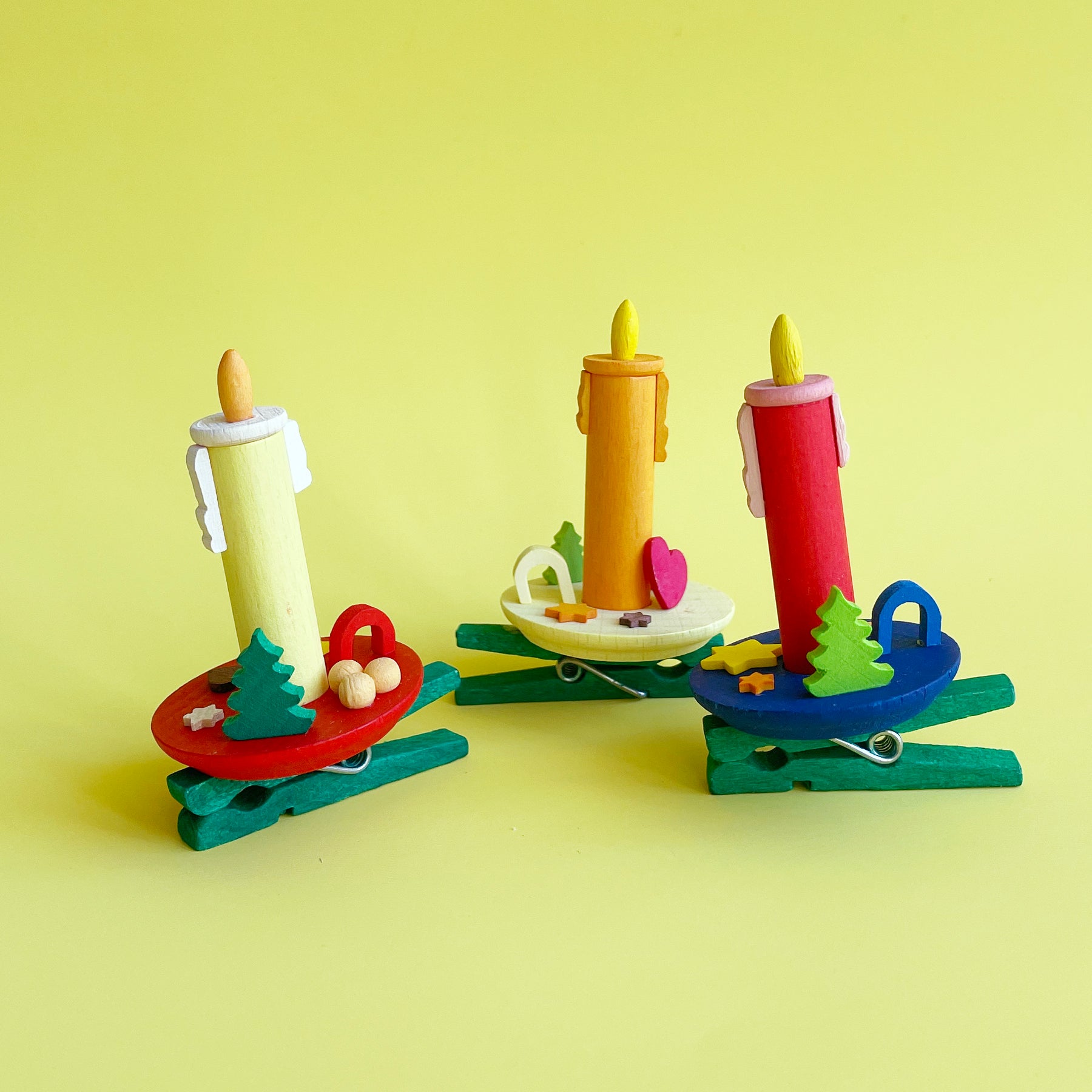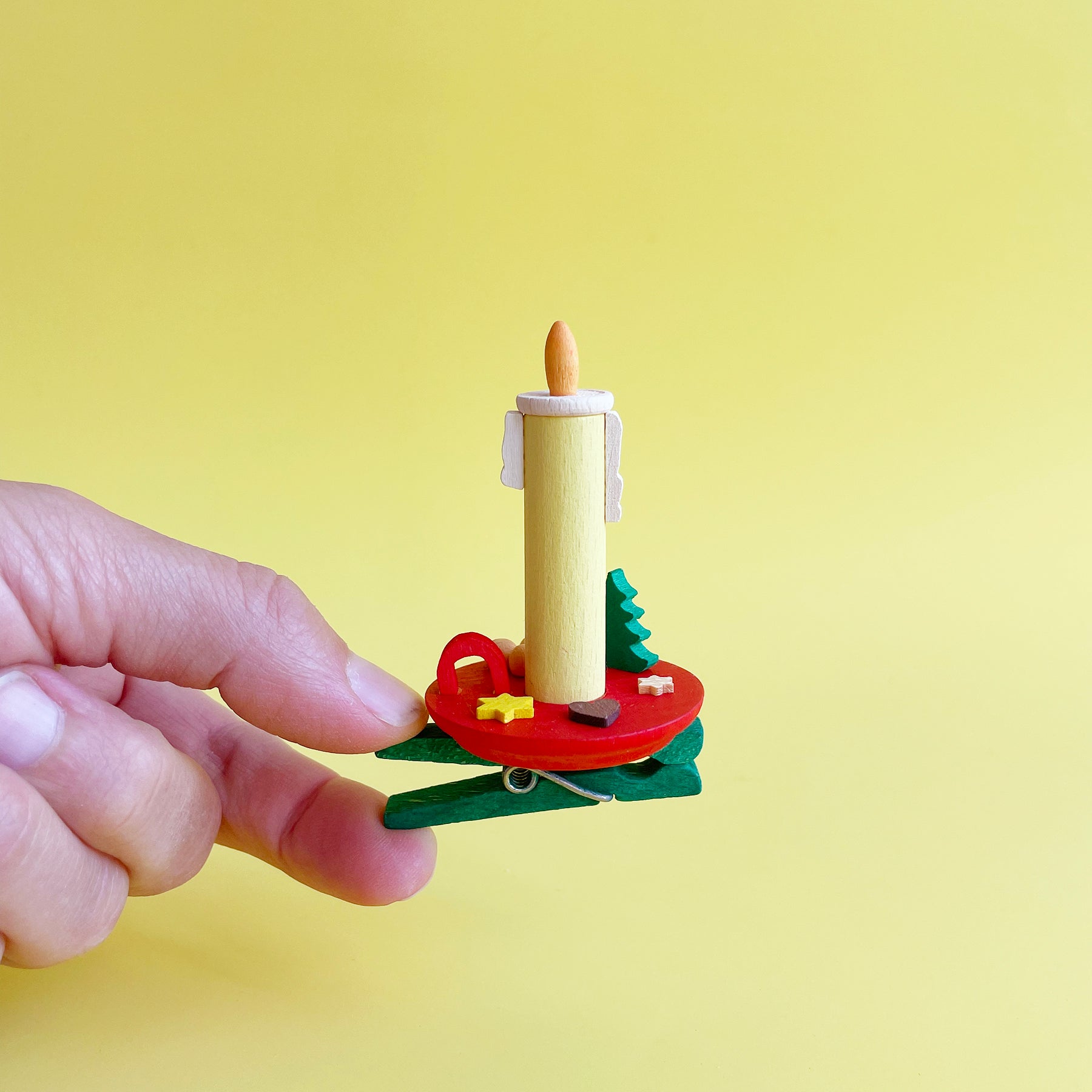 A clip on ornament that simulates the German tradition of placing lit candles on the tree. Handmade in Germany. Colors within each size vary, so get ready to be surprised!