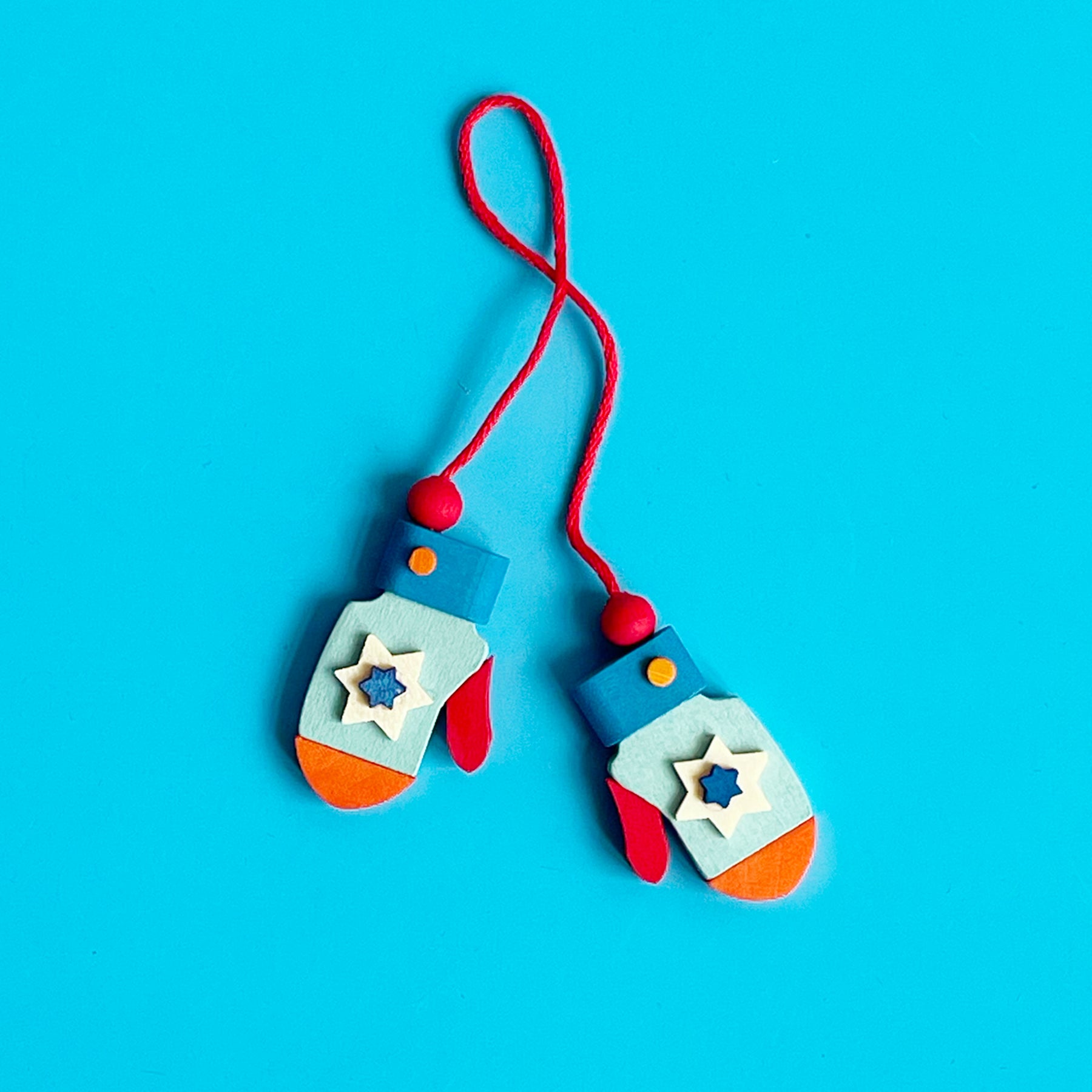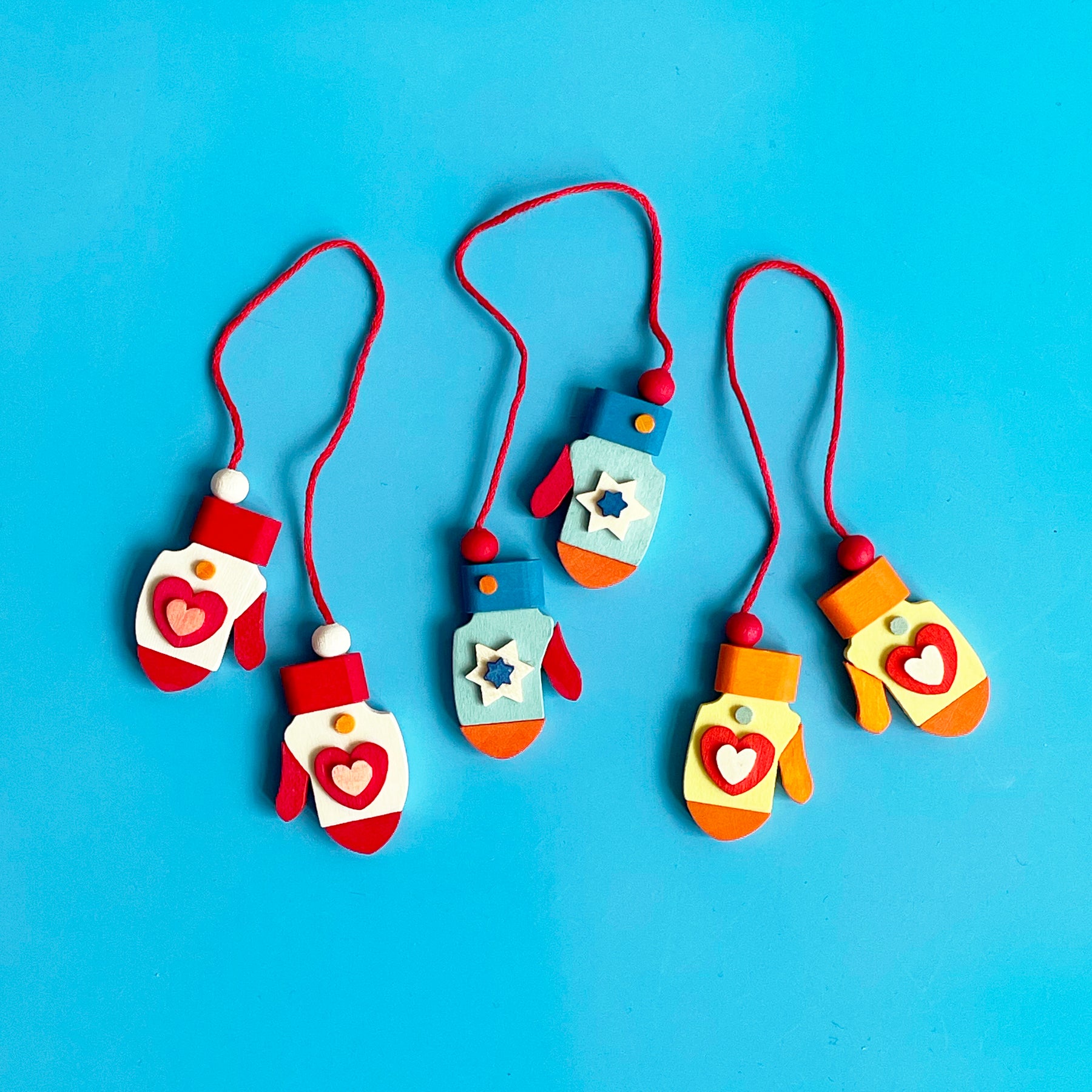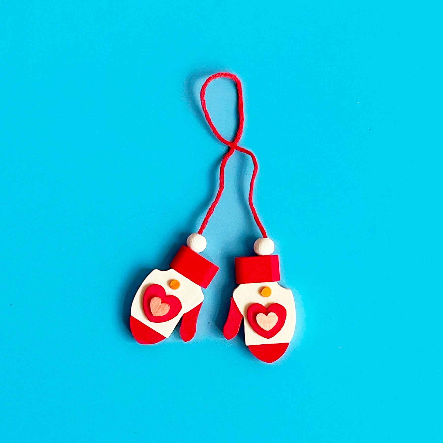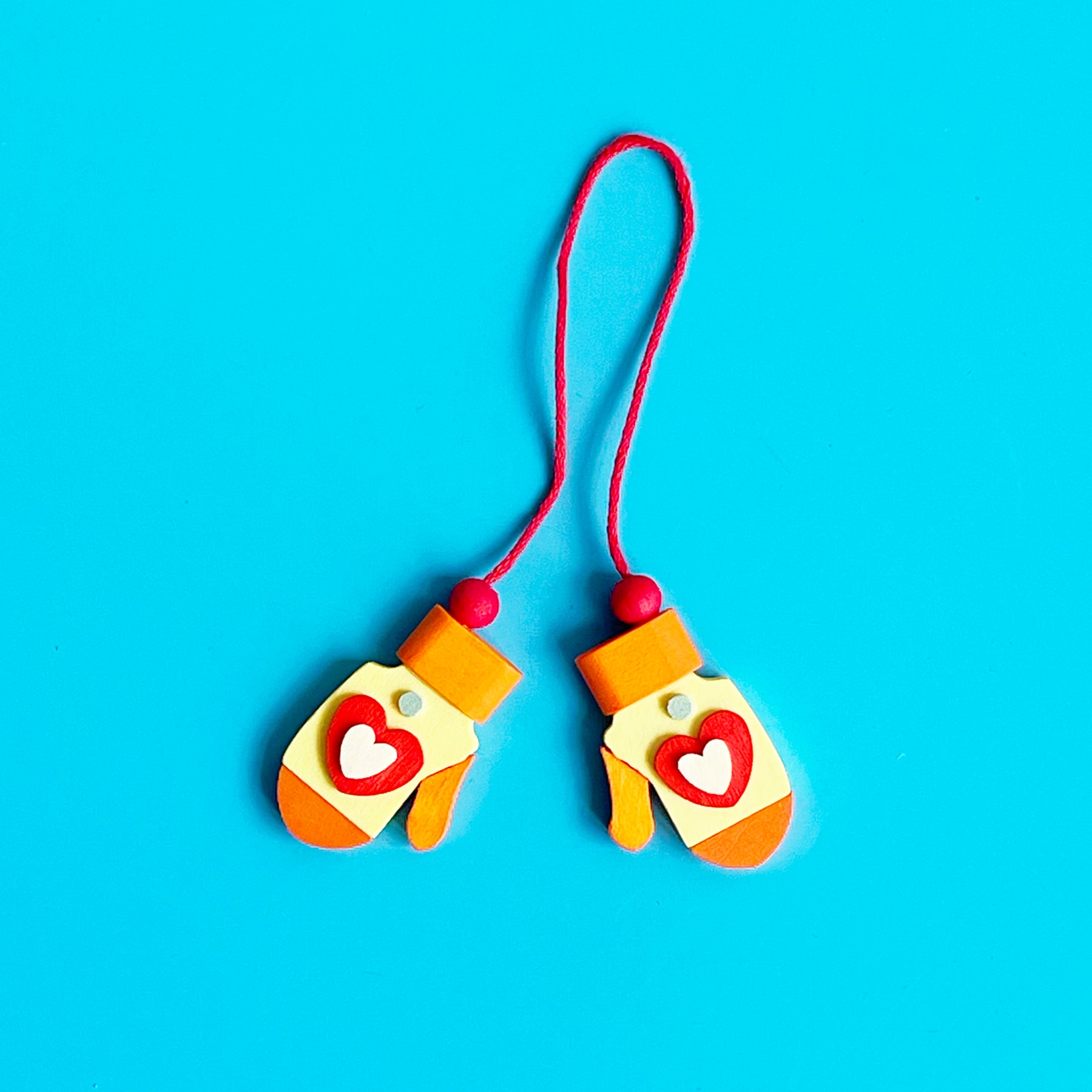 Mittens are 1.75 inches long each, on a 5-inch string.