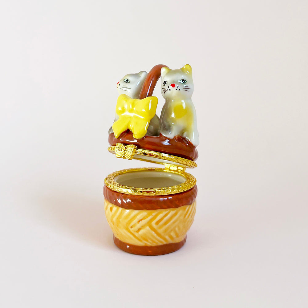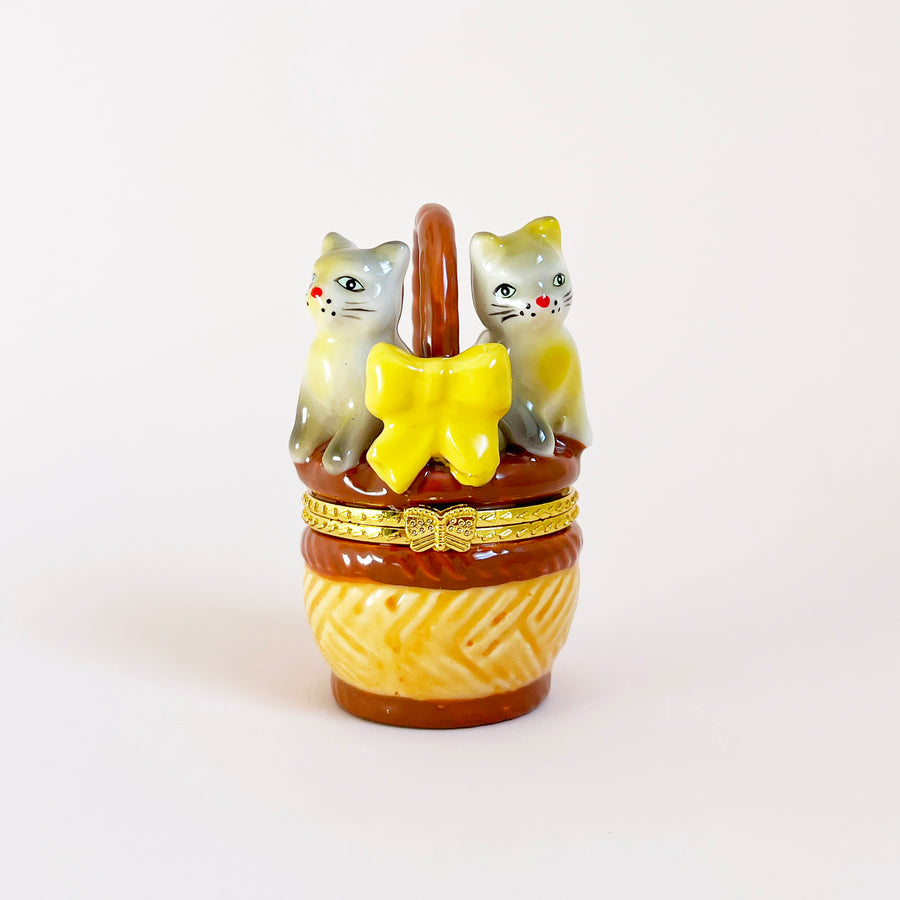 Adorable Cats in a Basket Trinket Box