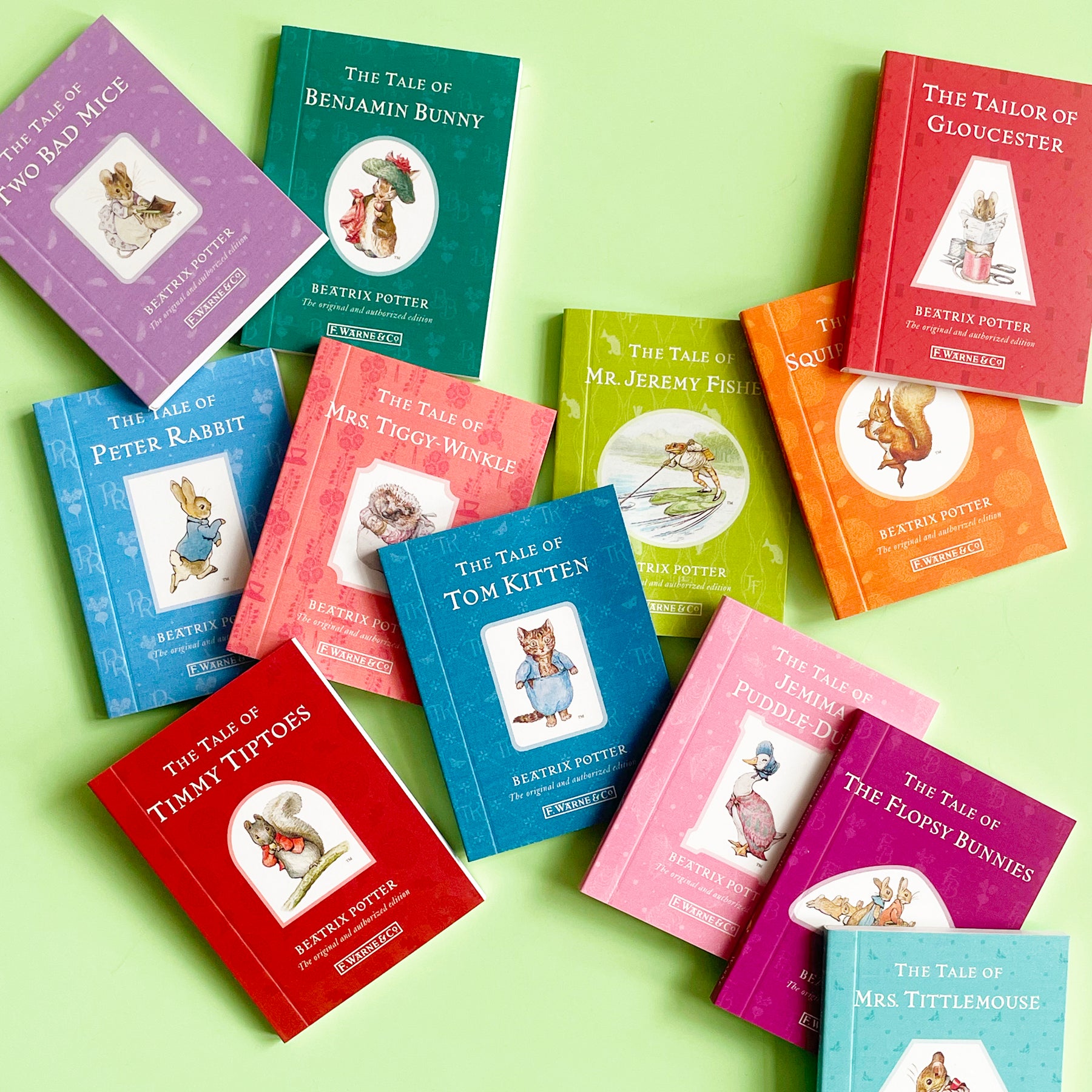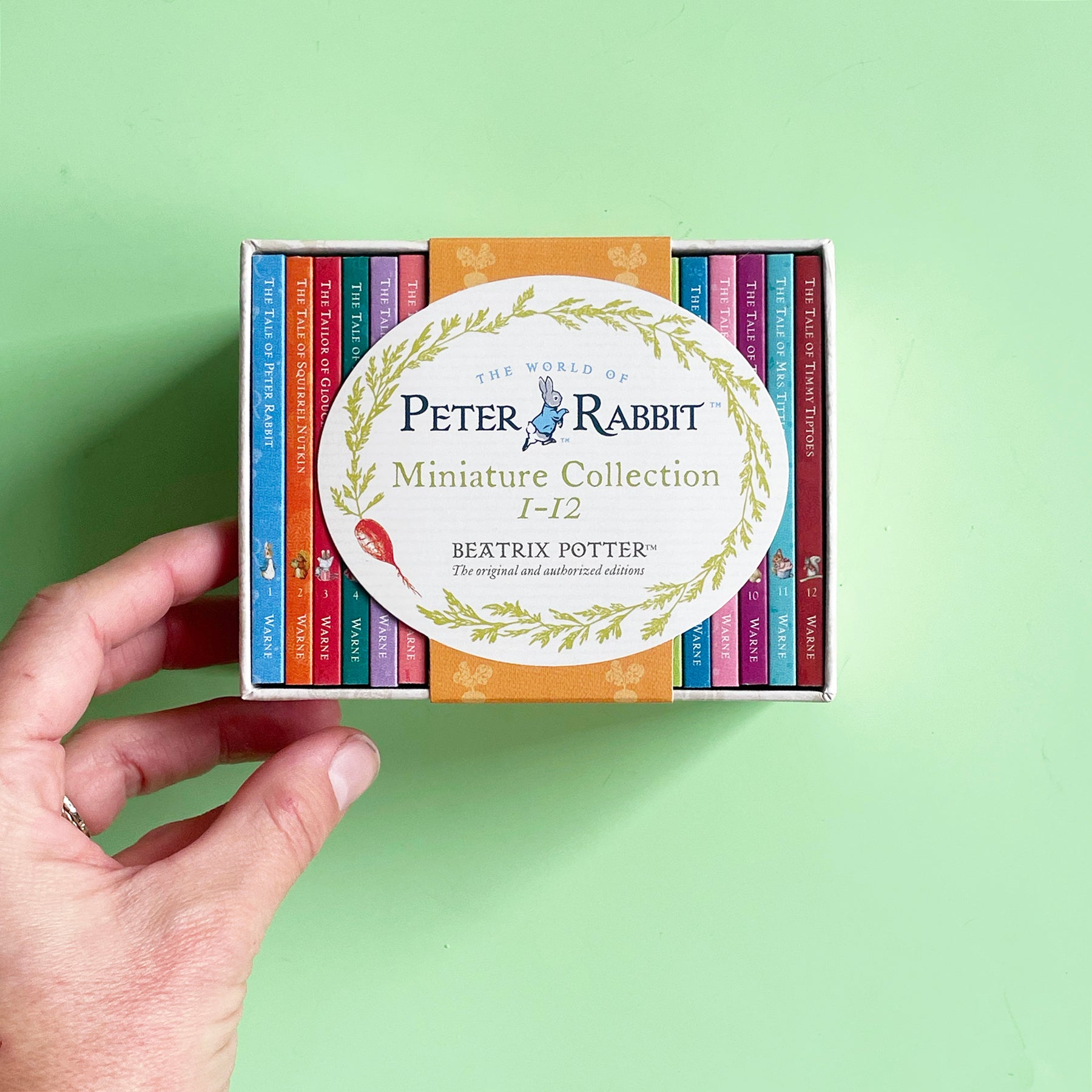 A boxed set of teeny tiny versions of 12 classic Beatrix Potter stories, including Peter Rabbit, Squirrel Nutkin, Jemima Puddle Duck, and my personal favorite, Two Bad Mice.