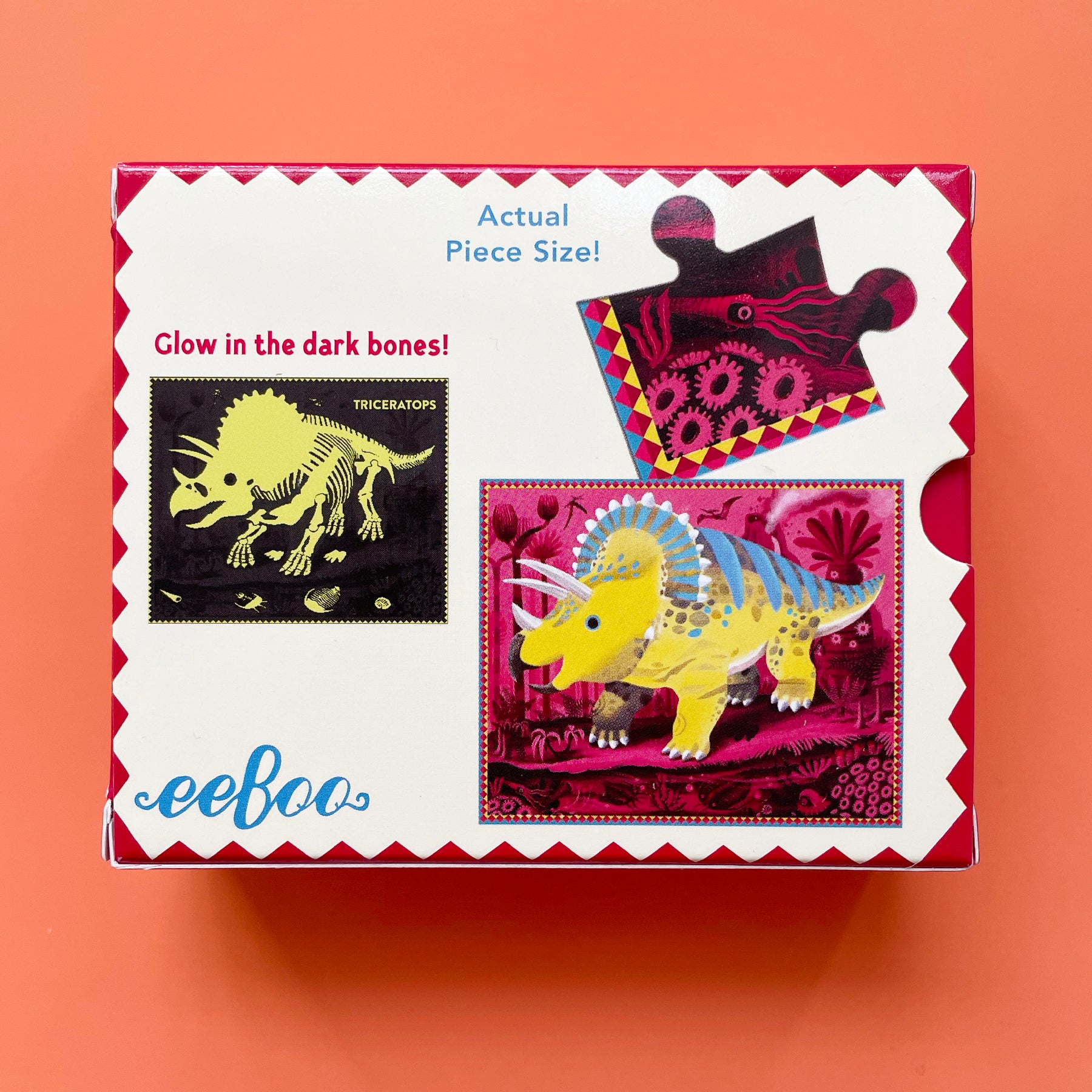 Little puzzle, big dino fun -  plus, it glows in the dark! This miniature puzzle is small enough to throw in your bag, but with pieces big enough they won't slip through the cracks. When it's all finished, turn out the lights and watch the dino bones glow! Styles vary but they are all super cute!