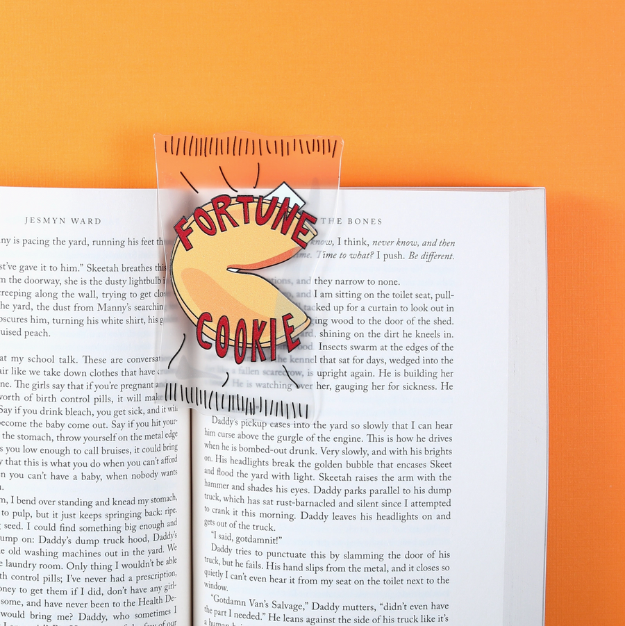 How cute! It's a fortune cookie bookmark! Printed double sided, on thin plastic.