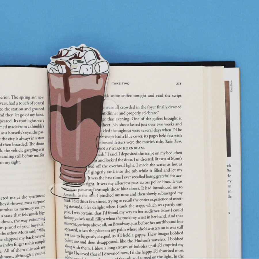 How sweet! It's a hot chocolate bookmark! Printed double sided, on thin plastic.