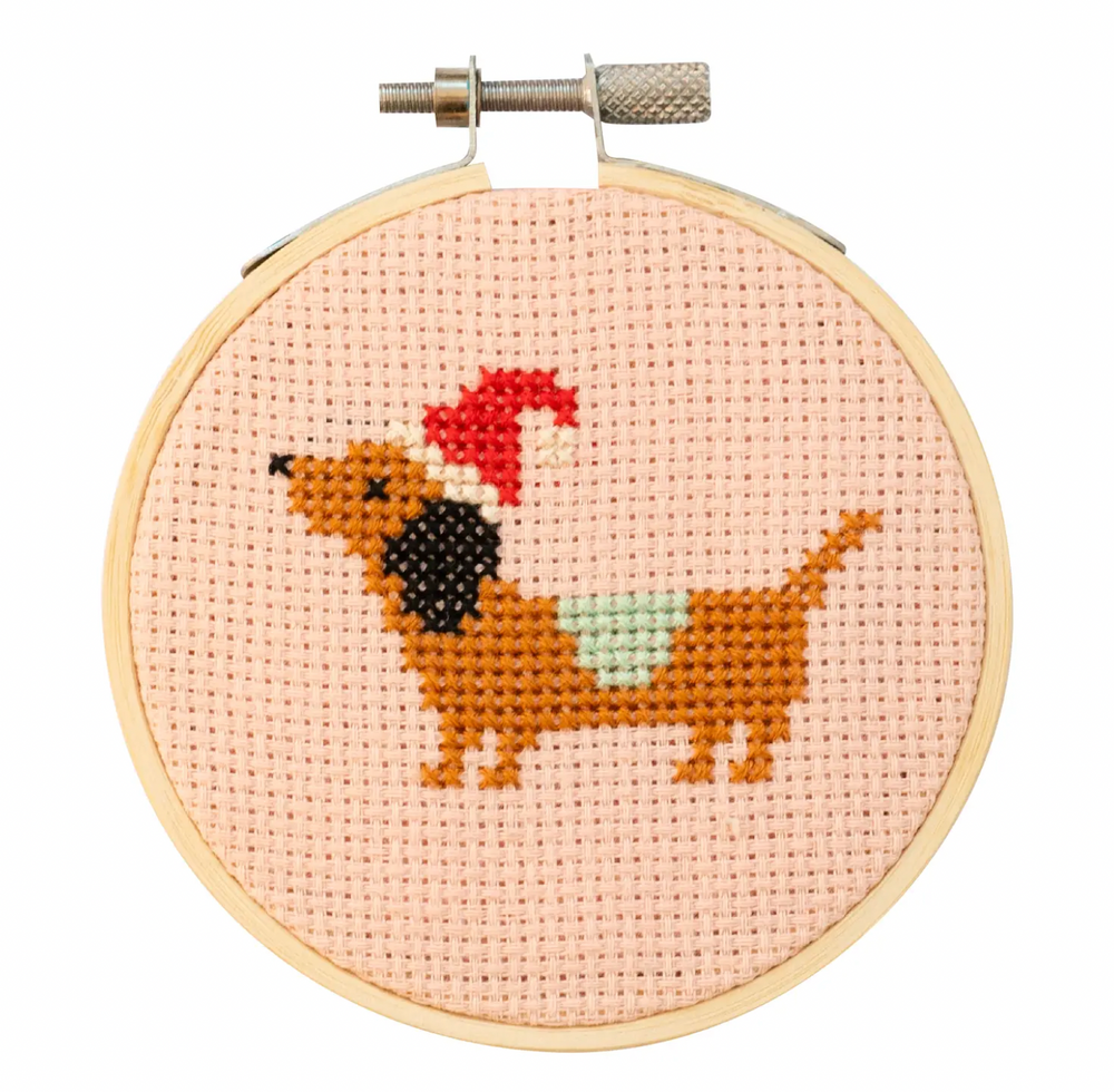 Deck the halls with this festive cross stitch kit! Everything you need to stitch up a charming winter scene is included in the kit: cross stitch fabric, thread, 4.25-inch hoop, needle, padding, and backing disc.