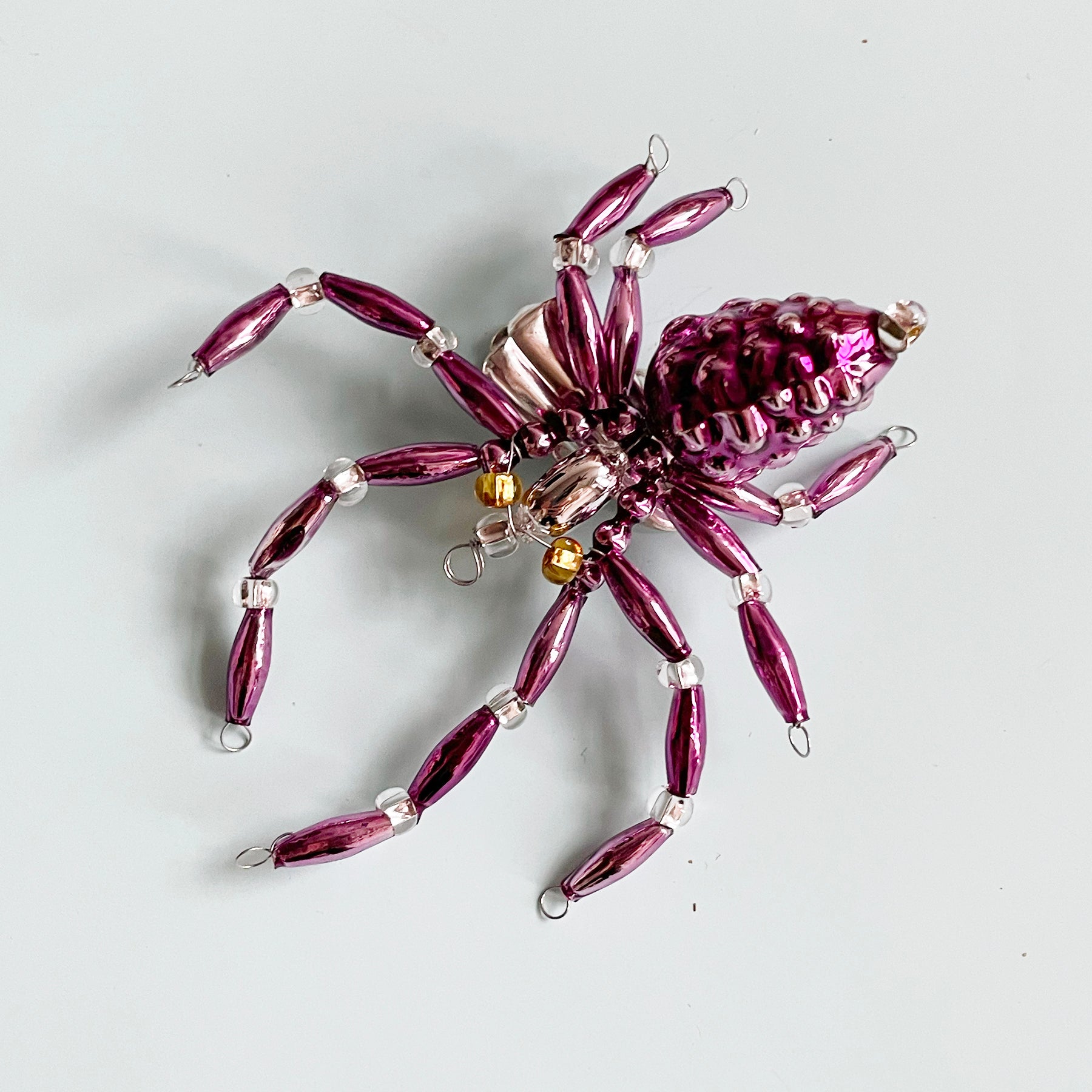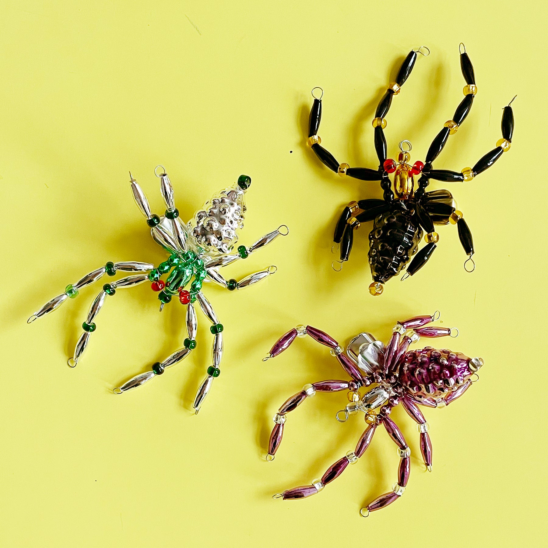 Whether it's a spooky Halloween, spooky Christmas, or just a spooky Thursday, this glass bead spider is the perfect pal. Intricate, colorful and full of detail, this handmade glass-bead clip shimmers beautifully in the Christmas light, and is a very special gift. 4.75 inches long.