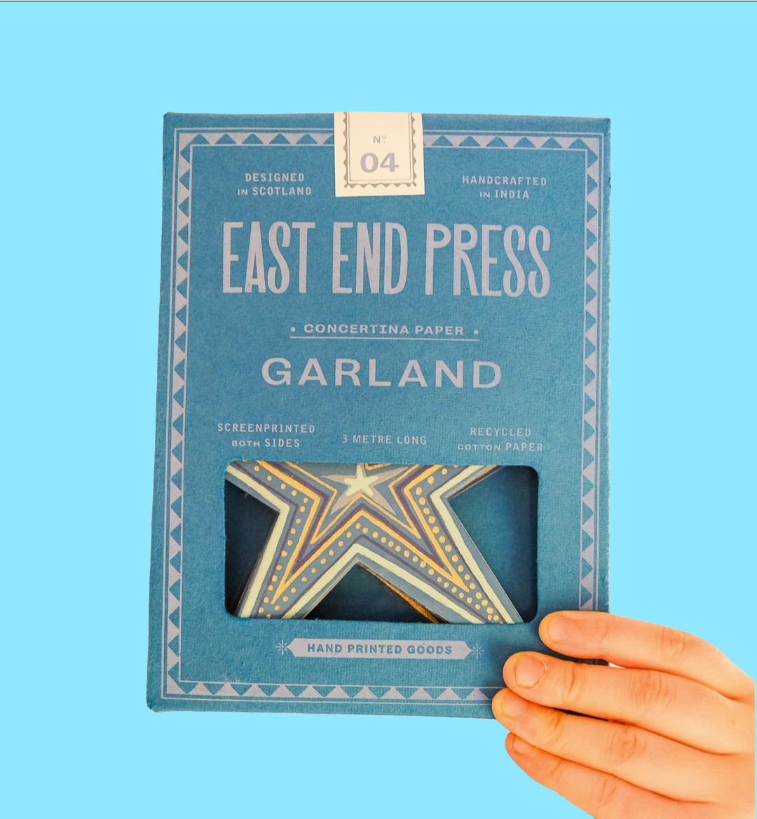 This star garland is ready to dazzle! It unfolds to create three meters of shapes, printed on both sides of thick handmade paper.